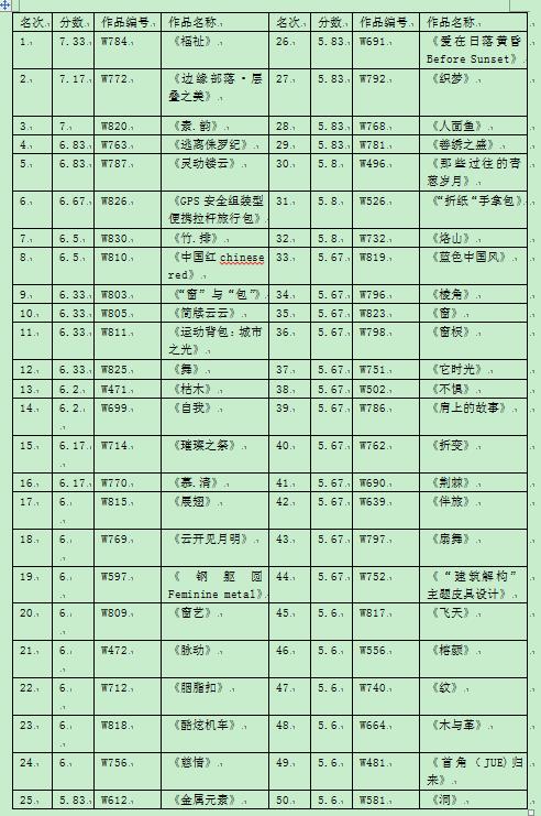 2、 作品分数为各评委对该作品评分的平均分。