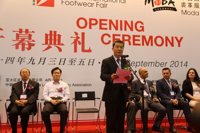 中国皮革协会理事长苏超英在2014年中国国际皮革展开幕式上致辞