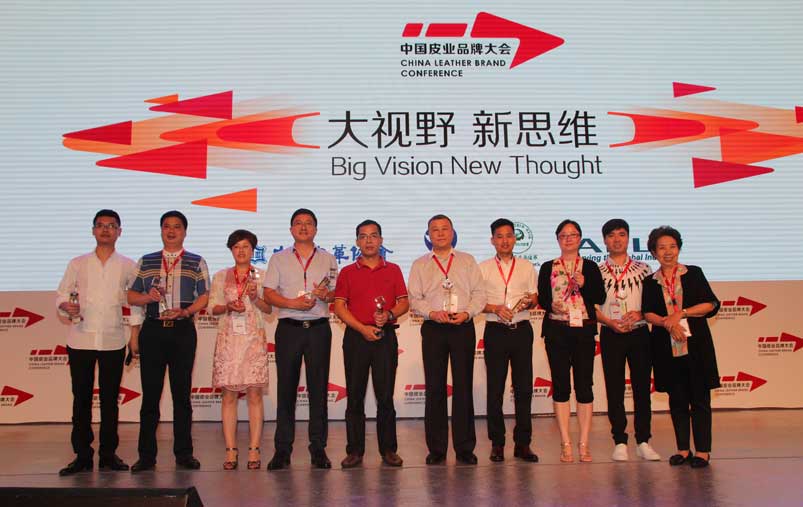 中国皮革协会前会长张淑华为获得“优秀童鞋奖项”的企业颁奖