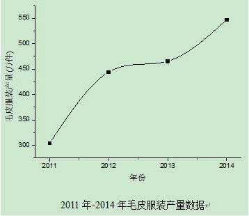 毛皮服装的产量一直保持了增长,而且从2013年开始服装产量明显出现加速的状况。从2011年的304万件发展到2014年546.89万件,增长79.9%。