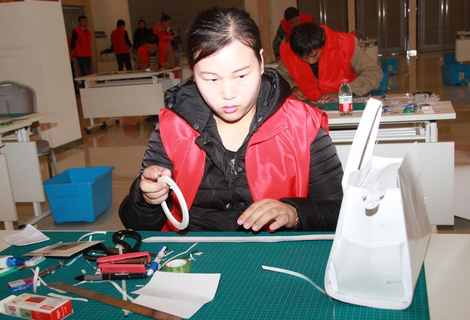 参赛选手在实物粘合环节