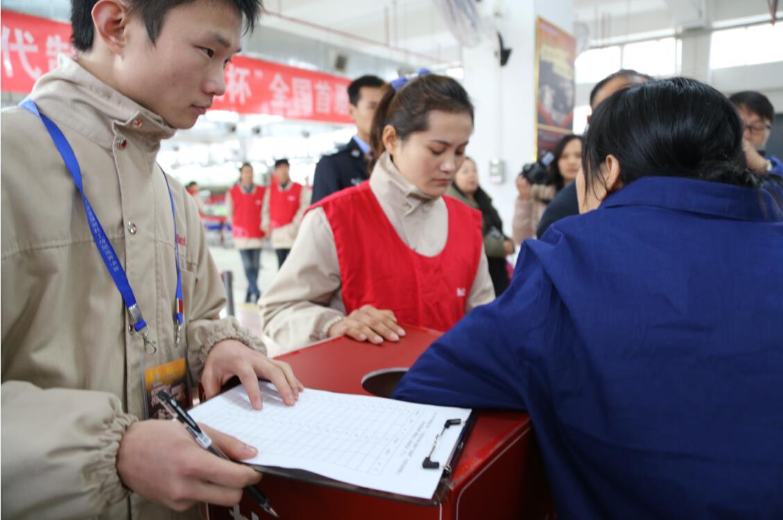 志愿者认真比对着清单上的物料与实际情况是否一致,为参赛选手做最充分的准备