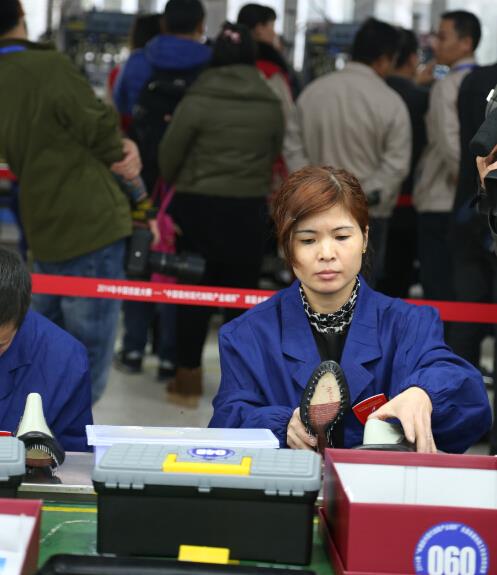 2014年11月29日下午,“中国宿州现代制鞋产业城杯”全国首届制鞋工职业技能决赛的实际操作比赛在宿州百丽鞋业25号车间举行。从物料准备到选手入场,从裁判宣读到赛前检查,从裁判宣布开始的铿锵有力到选手制鞋的如火如荼,从紧张有序地制作敲打到安静井然地撤出考场,一张张忙碌而快乐的脸让这个下午变得格外热闹非凡。