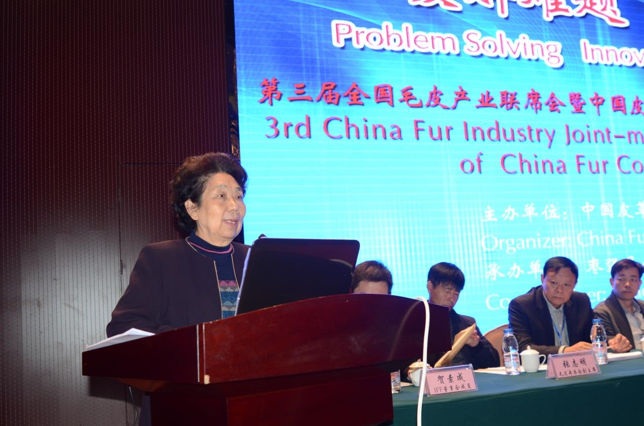 中国皮革协会名誉会长张淑华在会议上发表演讲