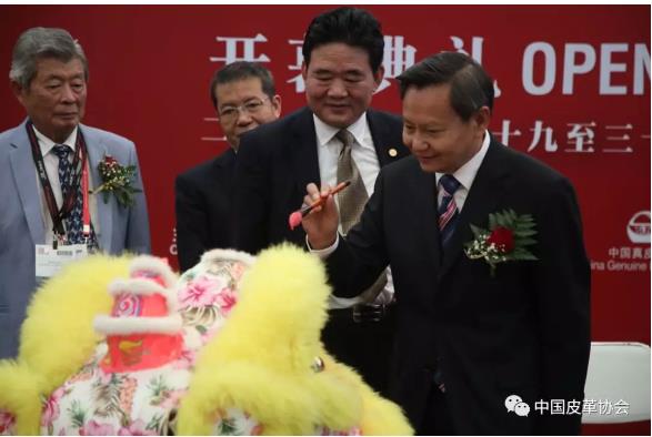 中国轻工业联合会会长张崇和,中国皮革协会理事长李玉中、名誉理事长苏超英出席展会开幕式。