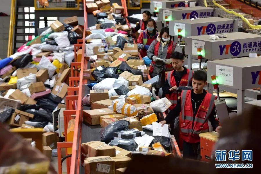 ▲2020年11月3日,在位于贵州省龙里县的贵州快递物流园圆通速递贵州分拨中心,工作人员分拣货件。新华社发(龙毅 摄)