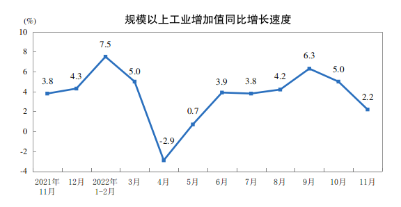 2022年11月份规模以上工业生产主要数据