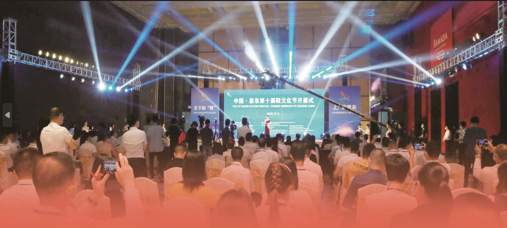 4、办好两年一届的鞋文化节。目前已成功举办了十届鞋文化节,共接待50.5万人/次,签约1221份,交易额达209.53亿元。计划于今年11月举办的第十一届鞋文化节,将广邀国内外采购商参会、举办惠东时尚女鞋直播带货活动、评选表彰惠东十大优秀制鞋企业和“惠东女鞋”十大品牌,通过线上线下同步举办等方式,充分展示“惠东女鞋”时尚魅力,大力宣扬惠东鞋文化,宣传推广“惠东女鞋”区域品牌,让“惠东女鞋”成为惠东的第一名片,进一步拓展鞋业市场,创新销售渠道,提升惠东鞋业形象和地位。