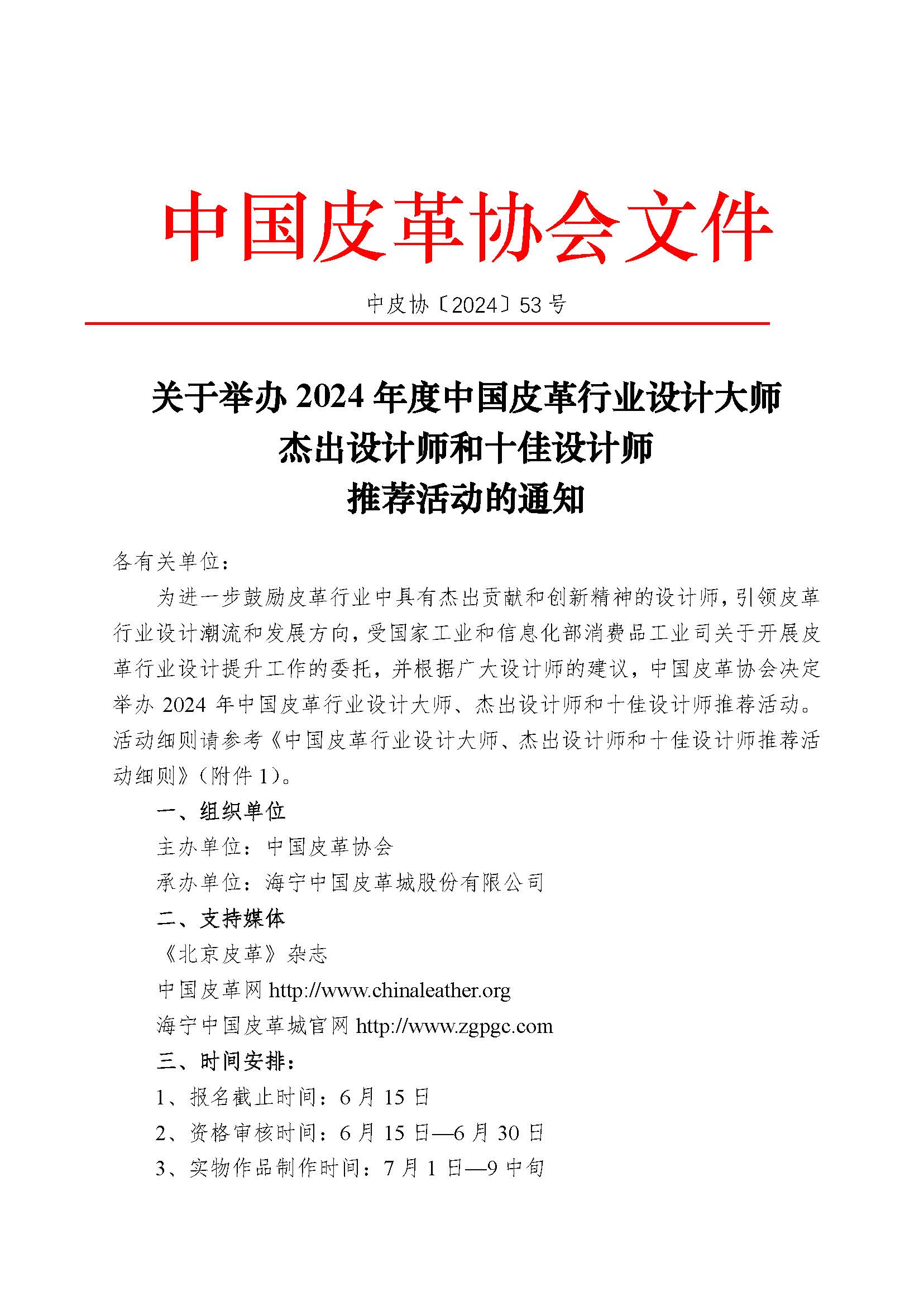 关于举办2024年度中国皮革行业设计大师、杰出设计师和十佳设计师推荐活动的通知