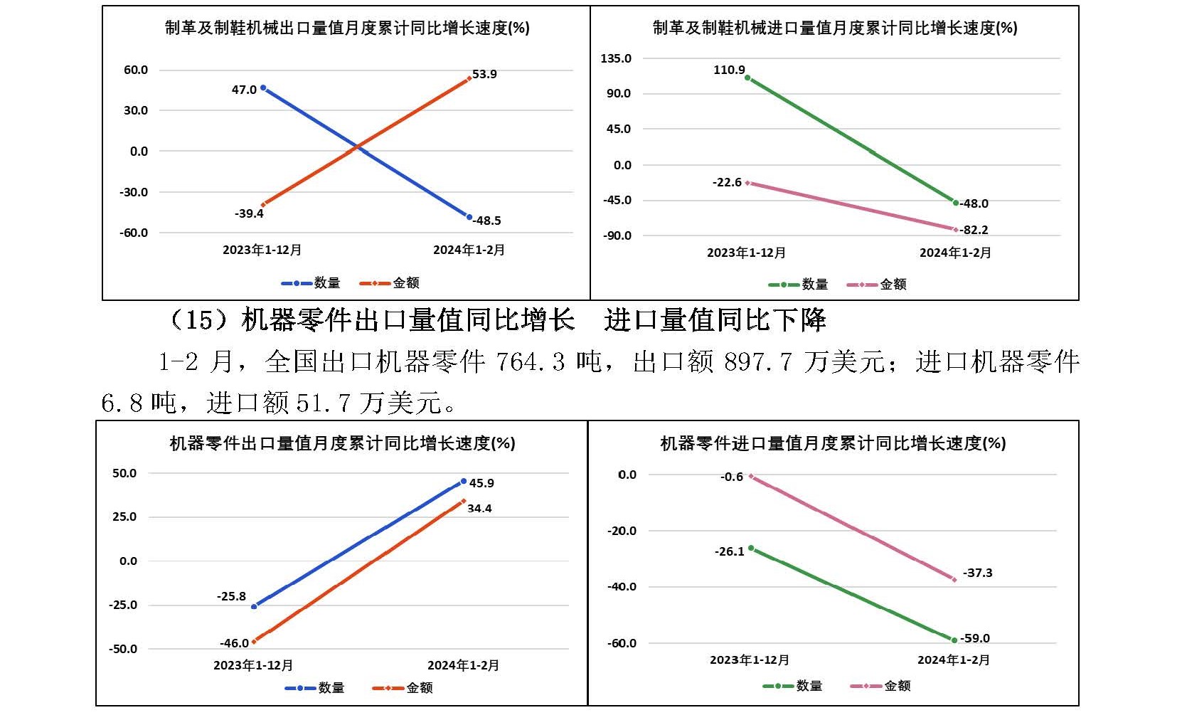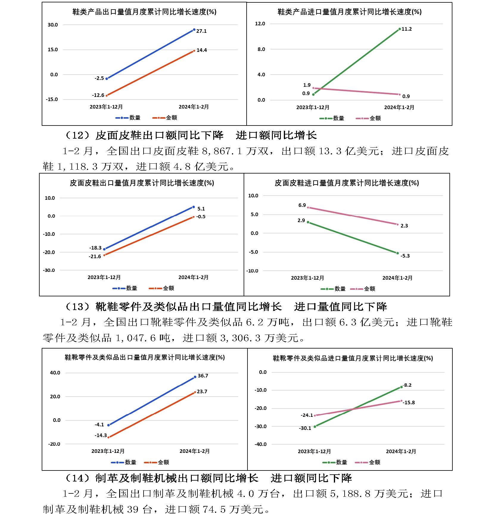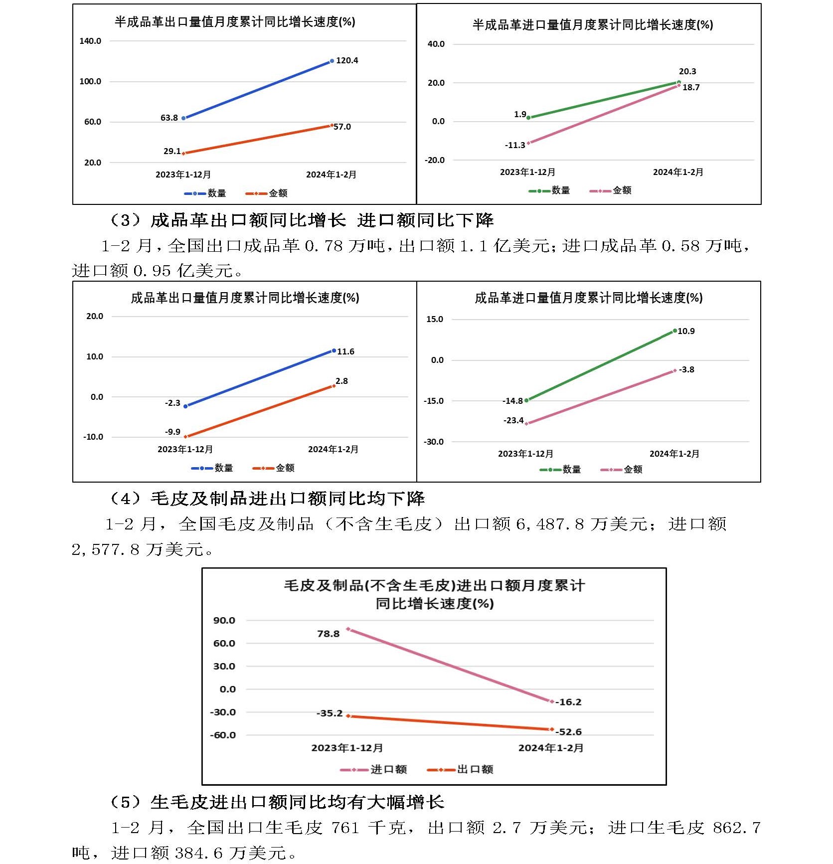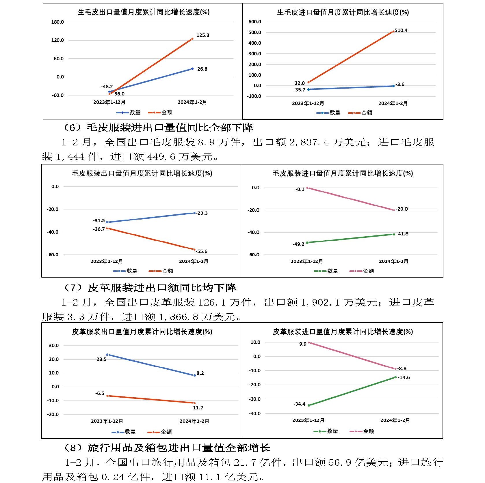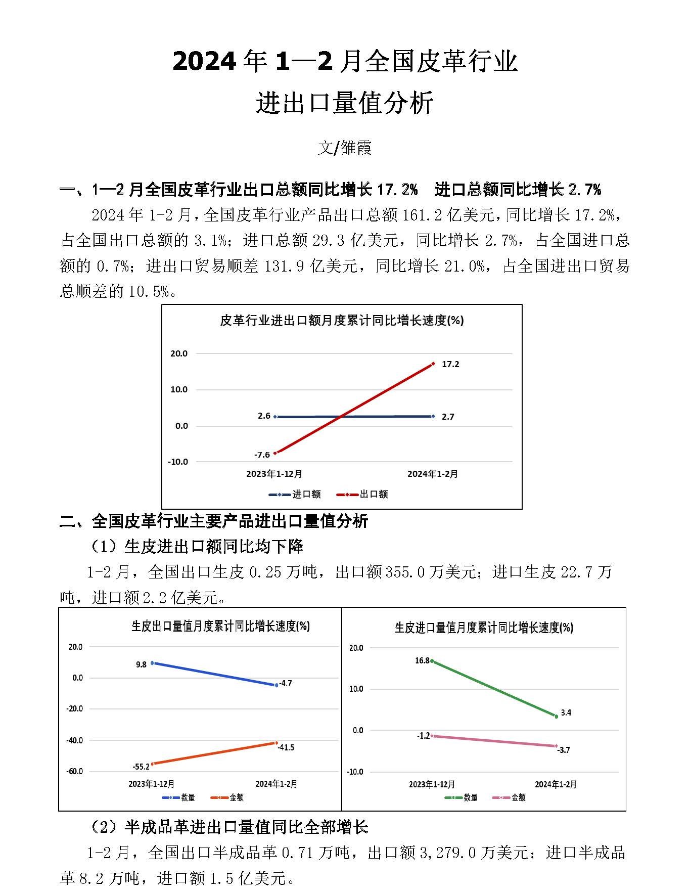 2024年1—2月全国皮革行业进出口量值分析