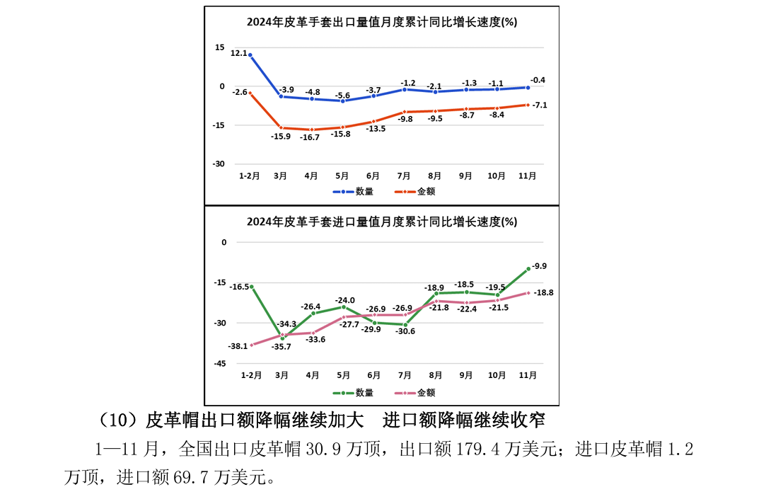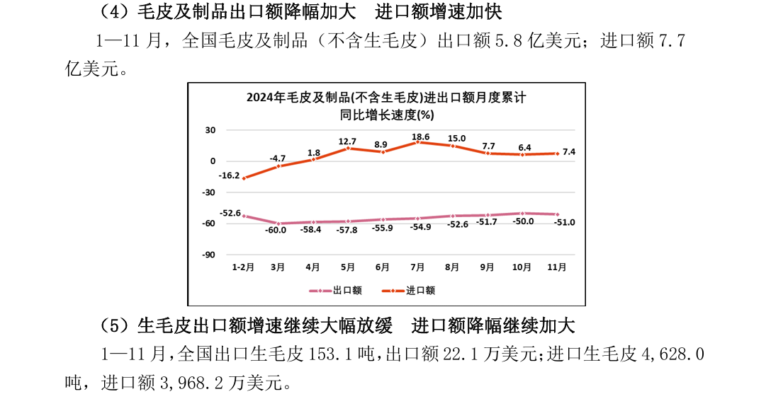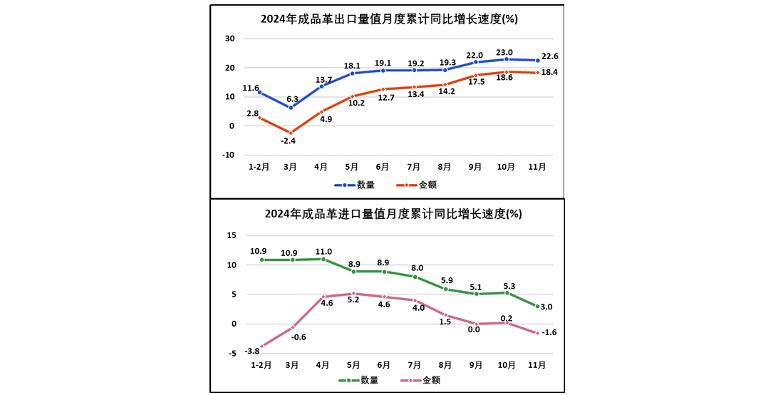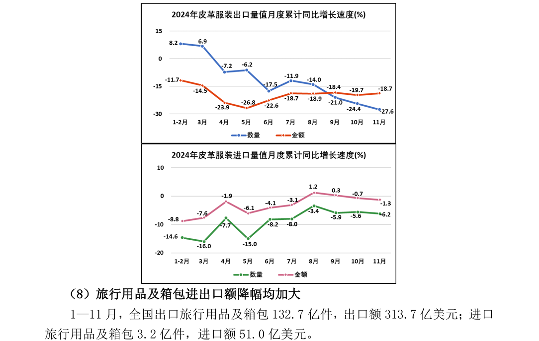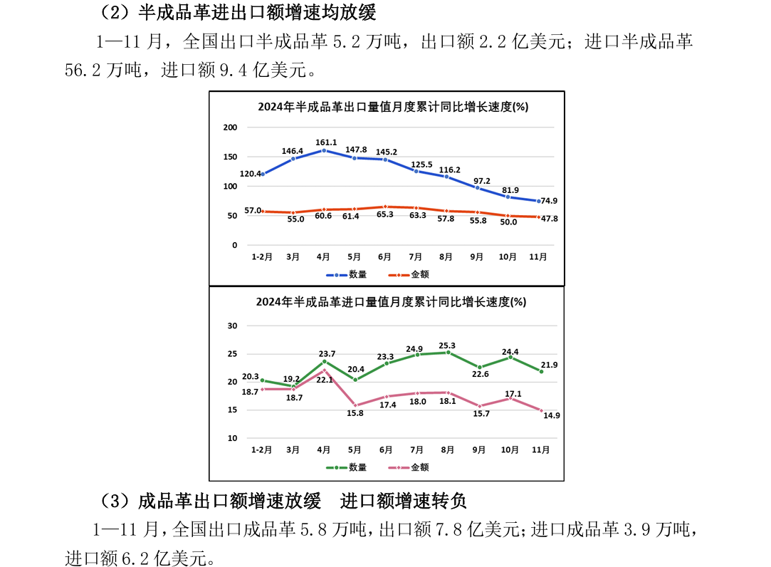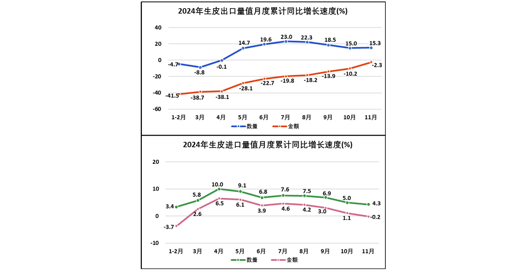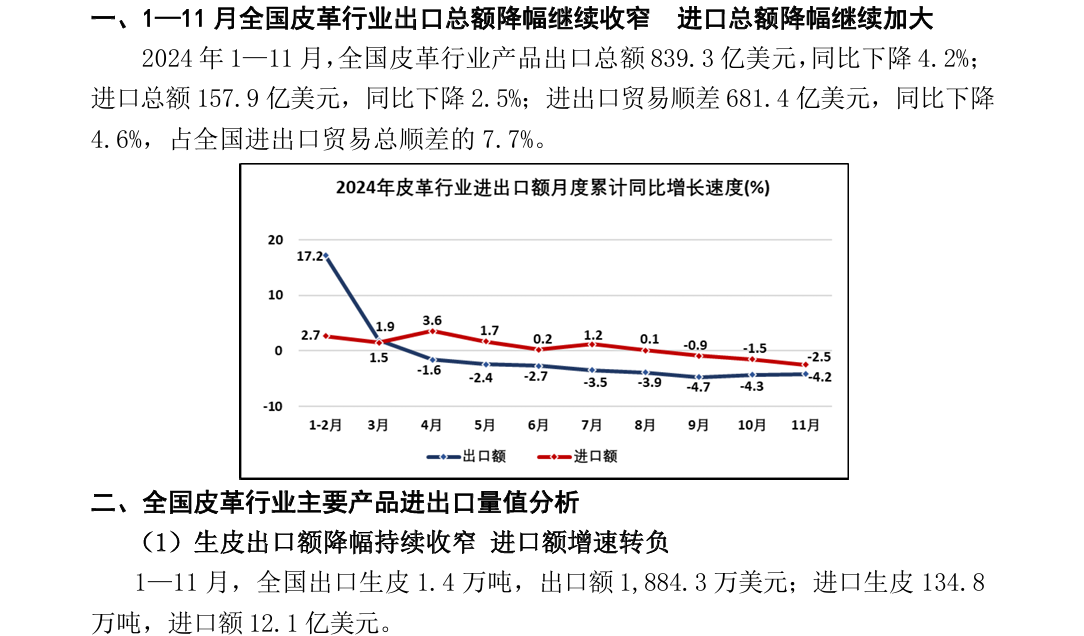 2024年1—11月全国皮革行业进出口量值分析