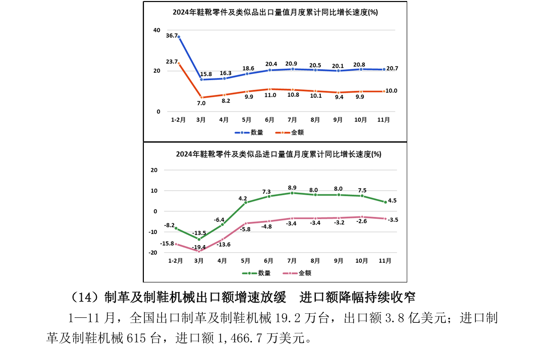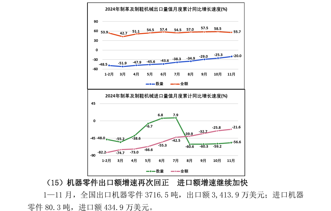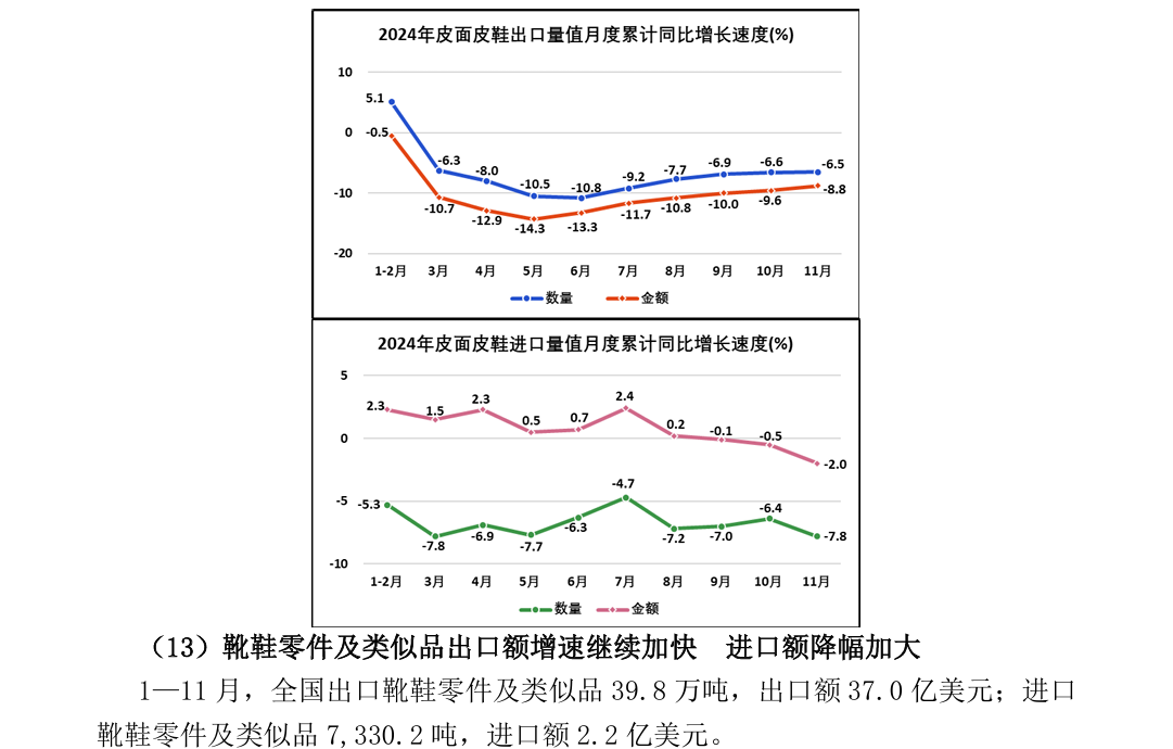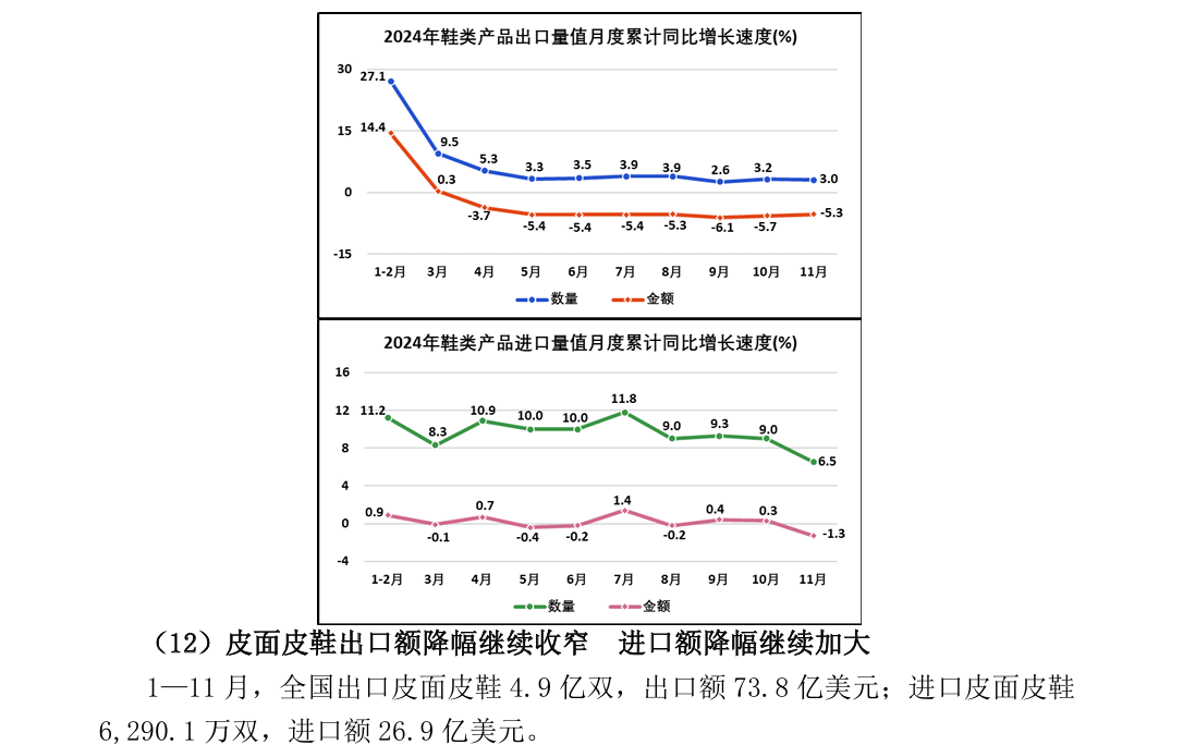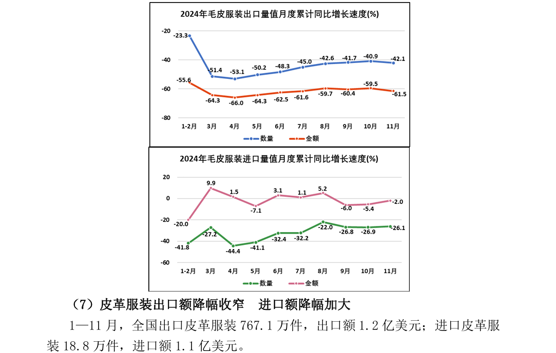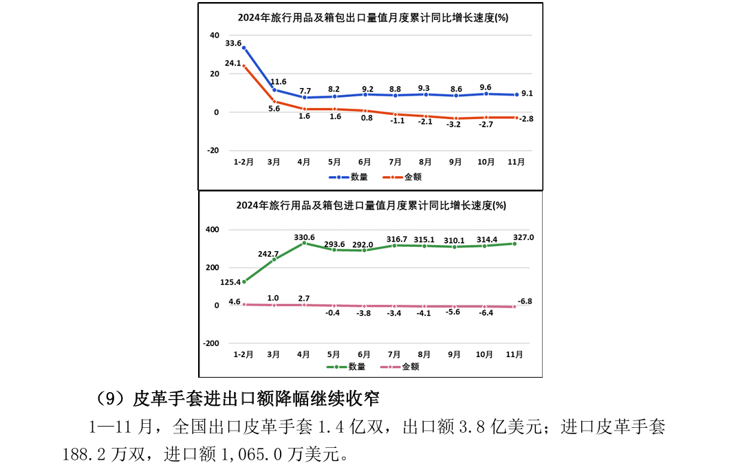 2024年1—11月全国皮革行业进出口量值分析
