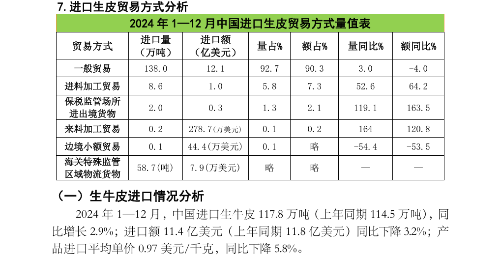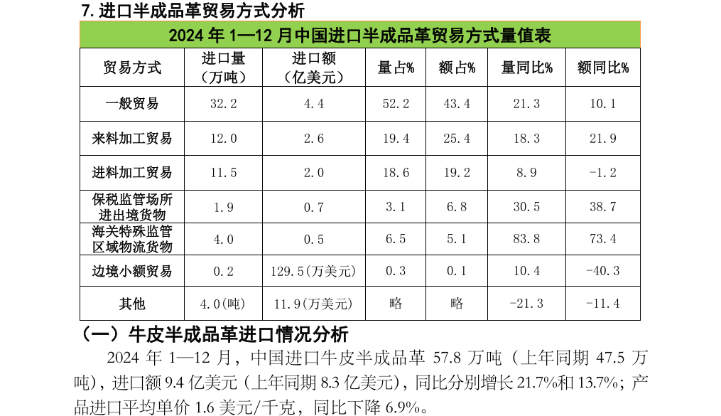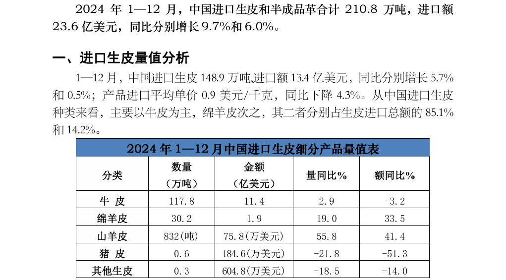 2024年1—12月中国进口生皮和半成品革产品数据分析