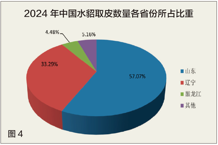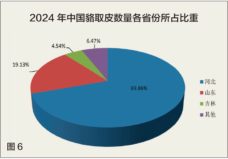 (一)2024年中国水貂、狐、貉取皮数量分析