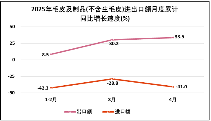 (4)毛皮及制品出口额增速继续加快 进口额降幅加大
