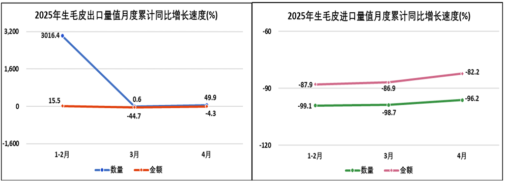 1—4月,全国出口生皮0.47万吨,出口额855.1万美元;进口生皮49.7万 吨,进口额4.2亿美元。