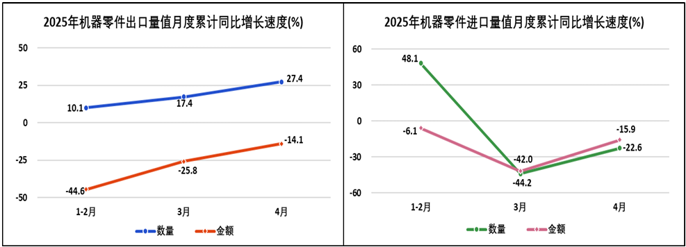 1—月,全国出口机器零件1,784.9吨,出口额1,353.9万美元;进口机器 零件23.1吨,进口额131.9万美元。