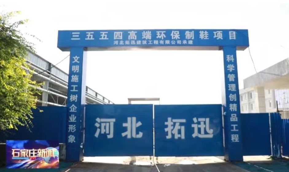 在行唐县开发区的河北三五五四鞋业有限公司高端环保制鞋项目建设现场,施工人员往来穿梭,各类机械有序作业,一派热火朝天的建设景象。