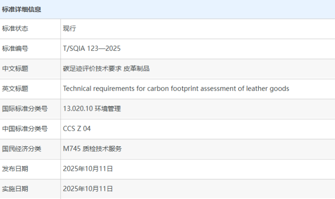2025年实施的T/SQIA123—2025《碳足迹评价技术要求皮革制品》团体标准,首次明确了天然皮革制品从原材料获取到废弃处置的全生命周期评价方法,包括数据采集规范、碳排放核算边界及通报要求等核心内容。