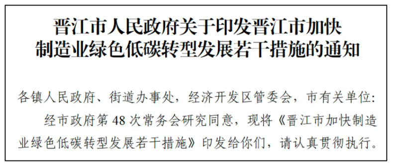 政策支持力度更让企业吃下定心丸。福建省晋江市发布的《加快制造业绿色低碳转型发展若干措施》中,针对皮革等高耗能行业推出真金白银的激励政策: