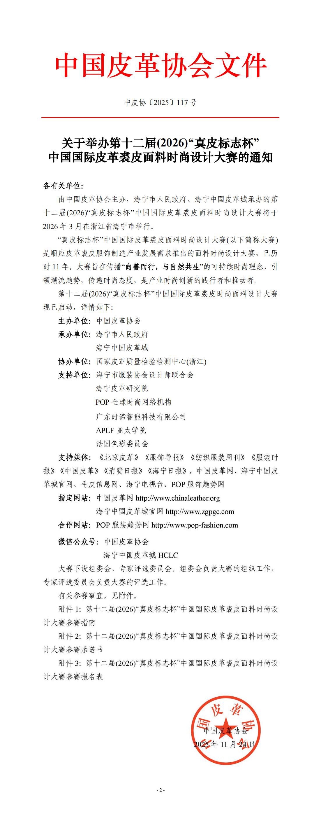 关于举办第十二届(2026)“真皮标志杯” 中国国际皮革裘皮面料时尚设计大赛的通知