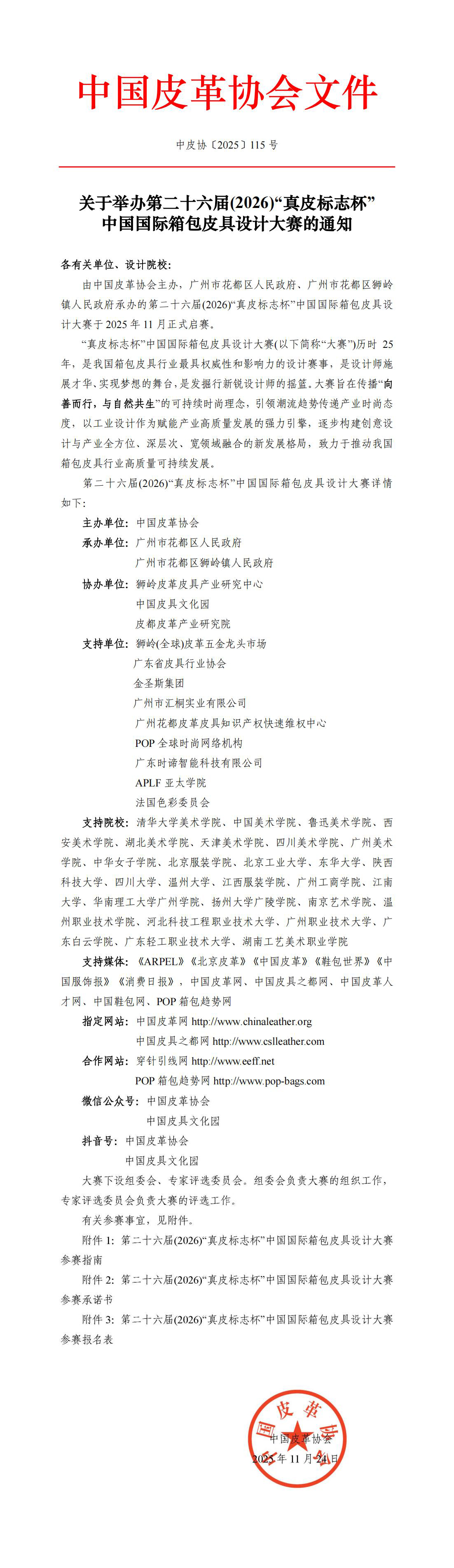 关于举办第二十六届(2026)“真皮标志杯” 中国国际箱包皮具设计大赛的通知