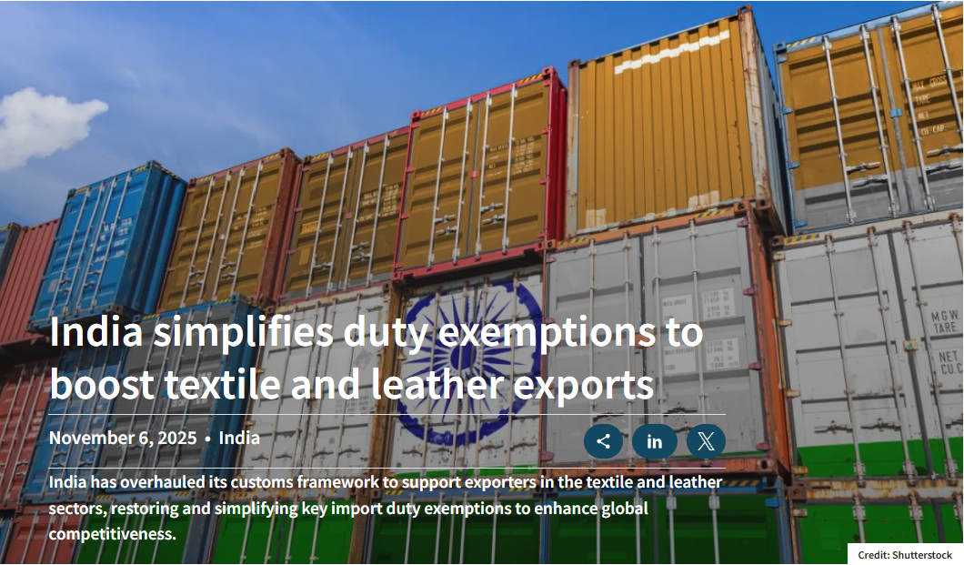 Under Notification No. 45/2025–Customs, issued by the Ministry of Finance on October 24, 2025, the Indian government consolidated 30 earlier circulars into a single framework designed to streamline import procedures and improve ease of doing business. The new structure removes basic customs duties on a range of inputs and accessories used in the manufacture of garments, footwear and leather goods for export.
