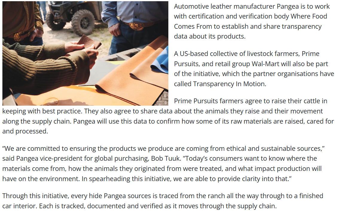 天然皮革的可持续性能在汽车面料中明显优于替代材料