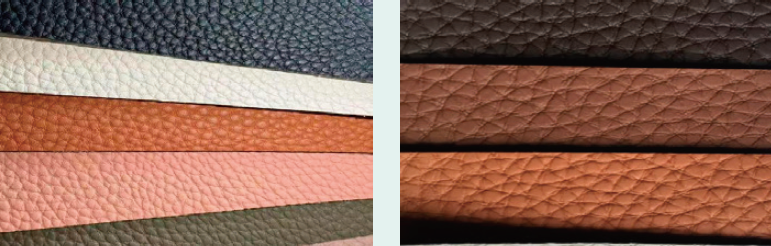 2、牛皮中厚大荔枝纹厚度在1.4mm~3.0mm之间,通过高压压花工艺形成纹路深达0.3mm~0.5mm,具有立体饱满的荔枝果皮状外观。这种设计不仅提升视觉层次感,较大的厚度还赋予其较强的抗撕裂强度和耐磨系数。产品广泛应用于箱包领域,家具应用、汽车内饰等多领域。