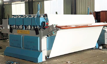 2、精密带刀片薄机系列K5355-S机型。该机拥有520mm超大工作宽度,采用一体铸造机身,具备厚度自动调整功能。采用3810mm加长刀带配合直径500mm强化飞轮,保障宽幅作业下0.2mm~8mm高精度削薄。360°悬臂式触控屏与自主PLC系统实现厚度调节,支持自动倒退及百组数据存储,内置废料卷入停机报警、独立吸尘模块及自研磨系统,以智能防护体系确保宽幅高效生产。