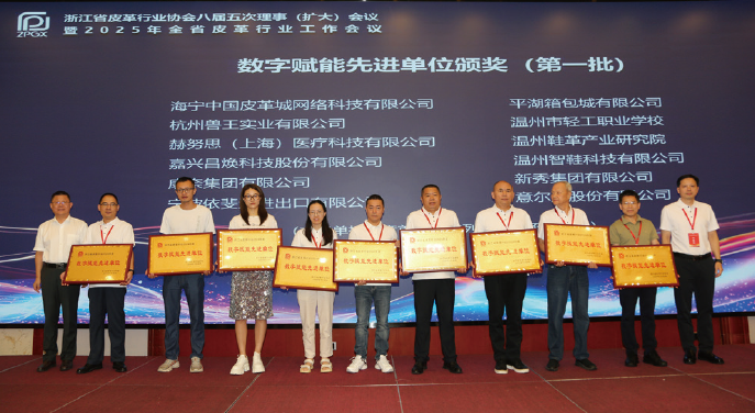 会上,发布了浙江省皮革行业2024年“数字赋能先进单位”“科技创新先进单位”“新生代优秀人物”“优秀电商销售人员”“标准化工作领跑人”等获奖名单,并举行了隆重的表彰仪式,与会领导和嘉宾为获奖代表颁发奖牌和荣誉证书。