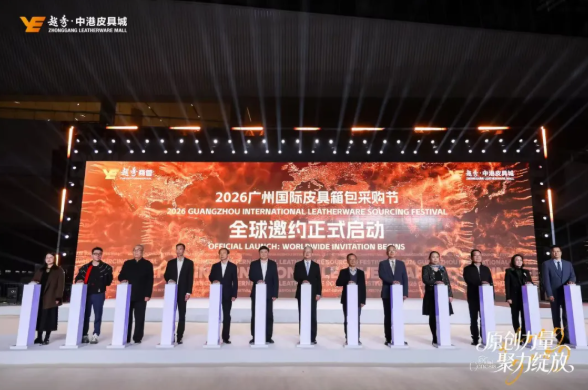 活动高潮时刻,中港皮具城正式启动“2026广州国际皮具箱包采购节”全球邀约。中国纺织工业联合会秘书长夏令敏、中国纺织工业联合会流通分会会长徐建华、广州市商务局副局长陈彦川、广州市工信局副局长邓谦、广州市贸促会会务信息部二级调研员邱毅、广州市白云区三元里街党工委副书记、办事处主任肖逍杰、越秀商管党委副书记、越秀房产基金执行董事及行政总裁区海晶、中国时装设计最高荣誉“金顶奖”获得者、广州市时尚设计师协会会长邓兆萍、中国时装设计最高荣誉“金顶奖”获得者毛宝宝、中国纺织工业联合会特邀副会长、广东省服装服饰行业协会执行会长卜晓强、广东省皮具商会会长刘浩清、白马公司总经理黄秋权、中港皮具城总经理何雨丹共同见证。在越秀集团战略引领下,中港皮具城加速构建全球采购服务枢纽:依托广州白云国际机场、广州白云站、广州火车站的区位优势,紧扣广交会外溢效应,整合金融和外贸服务资源、设计师圈层、海外媒体矩阵、实力供应链,为本土品牌与国际采购商搭建高效对接平台。中港皮具城已搭建覆盖全球100余个国家和地区的采购网络,2025年采购节吸引全球40余国采购商参与,全网曝光量突破千万级别。