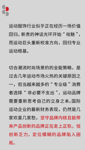 在经历阵痛后,运动品牌正在逐步找准方向,对于它们而言,最深厚的护城河永远是专业根基,真实的专业性能加上持续的创新活力,仍然是穿越周期不变的生存之道。