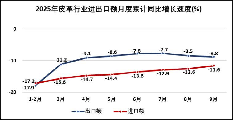 一、全国皮革行业出口总额降幅继续加大 进口总额降幅持续收窄