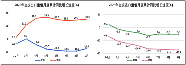 (1)生皮出口额增速继续加快 进口额降幅持续加大