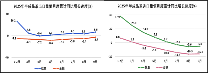 1—9月,全国出口半成品革4.6万吨,出口额1.8亿美元;进口半成品革43.8万吨,进口额6.5亿美元。