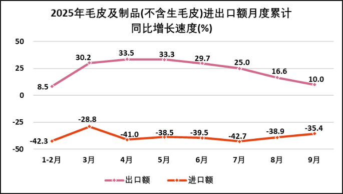 1—9月,全国毛皮及制品(不含生毛皮)出口额4.9亿美元;进口额3.8亿美元。