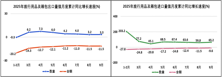 1—9月,全国出口旅行用品及箱包111.0亿件,出口额227.9亿美元;进口旅行用品及箱包4.1亿件,进口额38.3亿美元。