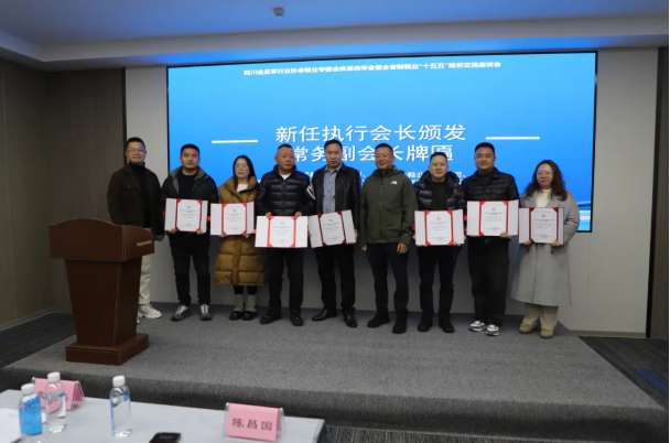 现场还为新任常务副会长单位颁发证书,全体新当选成员集体亮相,展现出四川制鞋业团结奋进、务实担当的良好精神风貌。