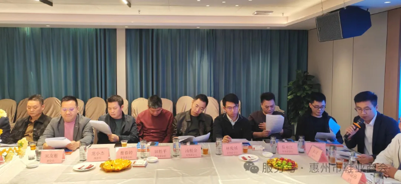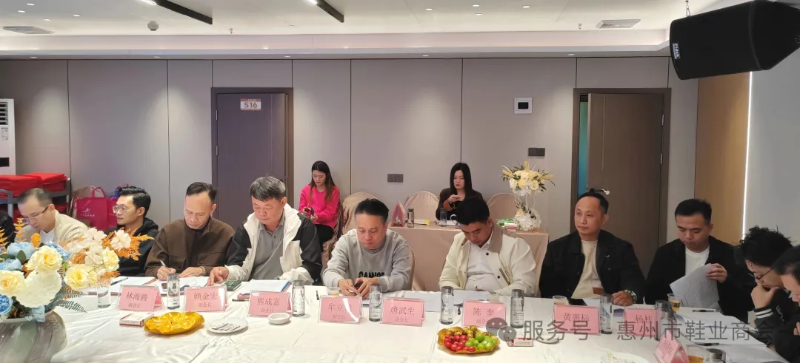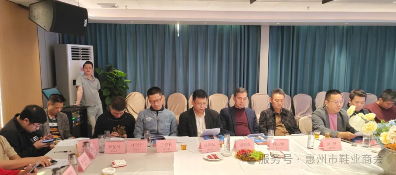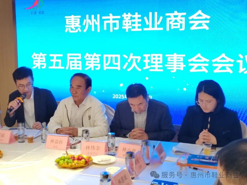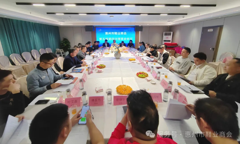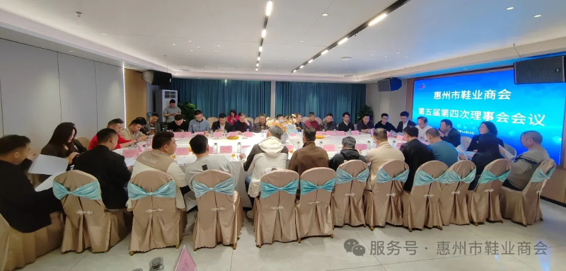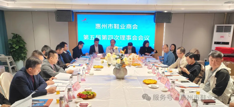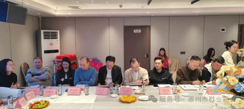 2025年12月16日,惠州市鞋业商会第五届第四次理事会会议在泰嘉盛宴圆满召开。会长林益孙、支部书记林伟金、秘书长顾斌、常务副会长林惠城、易永江、林城俊、邹永鹏、冯汉林、曹春婷,副会长吴杰、林海腾、陈少卿、赖金宏、林理亲、饶炜鑫、龙江、熊成富、宋友雁、黄勇、范伟强、朱松峰、陈奎,理事廖炯华、何清柏、林家杰、叶艾鑫等理事会成员,及相关代表共33人出席会议。监事长胡耀升、监事黄惠标列席会议。