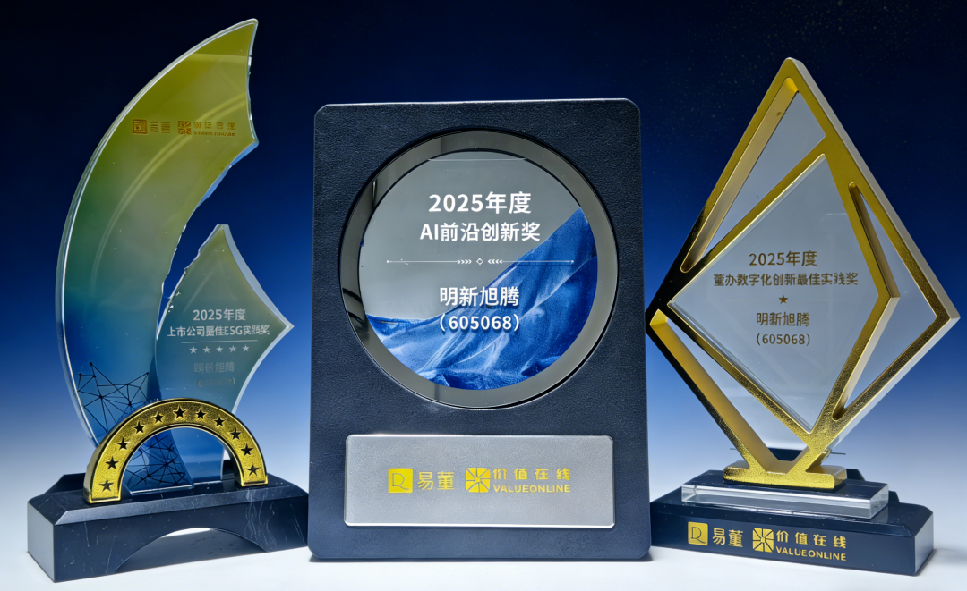在本次大会上,明新旭腾凭借卓越的实力与前瞻的实践,从众多优秀企业中脱颖而出,一举斩获大会颁发的三项重磅荣誉:2025年度上市公司最佳ESG实践奖;2025年度AI前沿创新奖;2025年度董办数字化创新最佳实践奖。