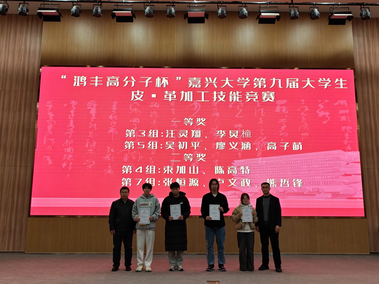 12月18日,嘉兴大学轻化工程专业在行政楼报告厅举行“中国皮革协会-杨正奖学/教金”“STAHL奖学金”和“‘鸿丰高分子杯’嘉兴大学第九届皮·革加工技能竞赛”颁奖典礼。中国皮革协会副书记张西文、办公室主任曹玉亭,徐州鸿丰高分子材料有限公司经理陈祖武,嘉兴大学材料与纺织工程学院党委副书记马晓红,浙江省皮革行业协会常务副理事长、轻化工程专业负责人罗建勋教授及轻化工程专业全体师生共同见证了这一荣誉时刻。典礼由轻化工程专业主任洪新球主持。