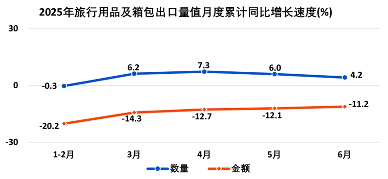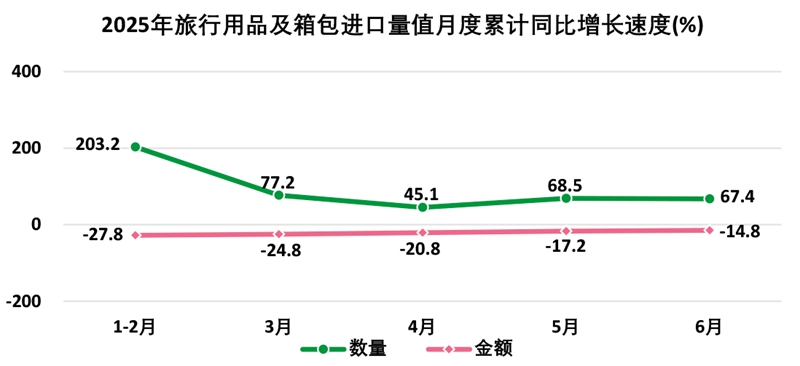 1—6月,全国出口旅行用品及箱包73.0亿件,出口额159.7亿美元;进口旅行用品及箱包2.6亿件,进口额25.4亿美元。
