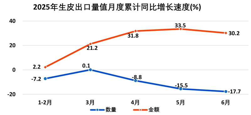(1)生皮出口额增速放缓 进口额降幅持续加大