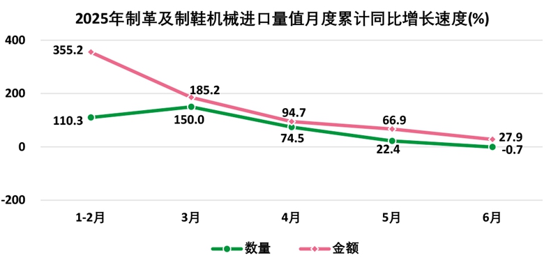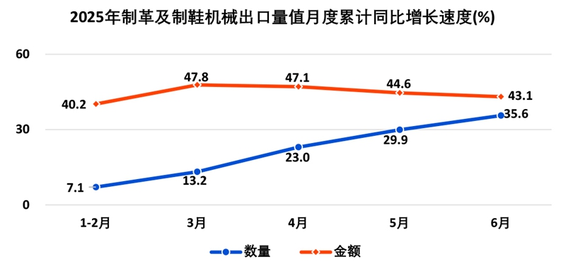 1—6月,全国出口制革及制鞋机械13.5万台,出口额2.7亿美元;进口制革及制鞋机械280台,进口额712.5万美元。