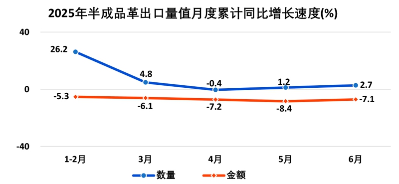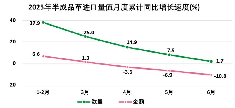 1—6月,全国出口半成品革3.0万吨,出口额1.2亿美元;进口半成品革31.3万吨,进口额4.7亿美元。