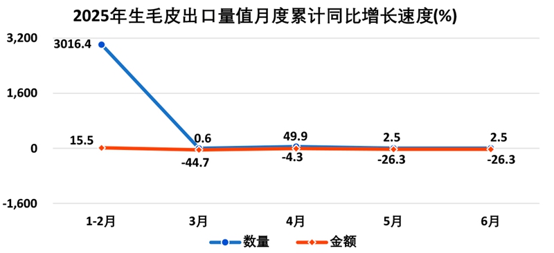 (5)生毛皮出口额降幅保持不变 进口额降幅加大
