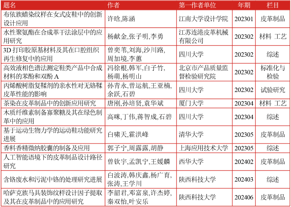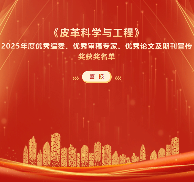 热烈祝贺所有获奖专家、学者与业界同仁!衷心感谢多年来关心和支持期刊成长的各位领导、专家与朋友们!展望未来,《皮革科学与工程》将继续致力于建设高水平的学术交流平台,助力皮革及相关学科创新发展。我们期待与广大科技工作者、编委、审稿专家、作者及读者携手共进,共促皮革行业科技进步与可持续发展。