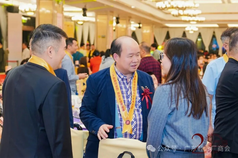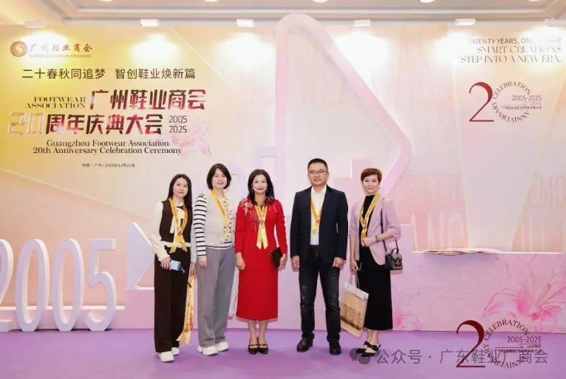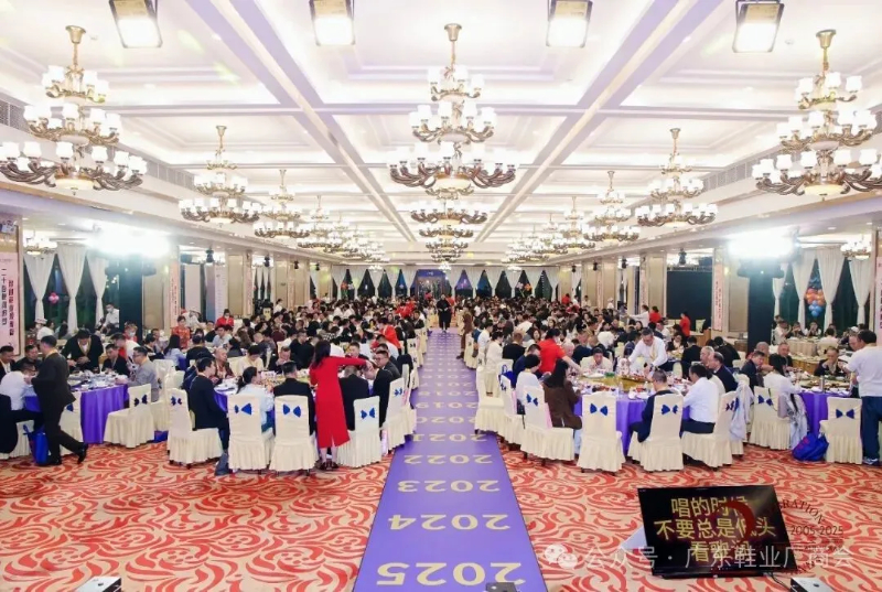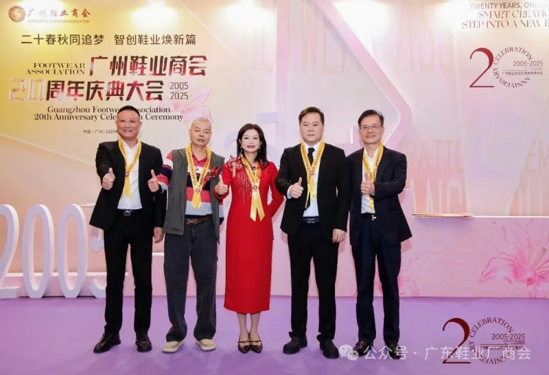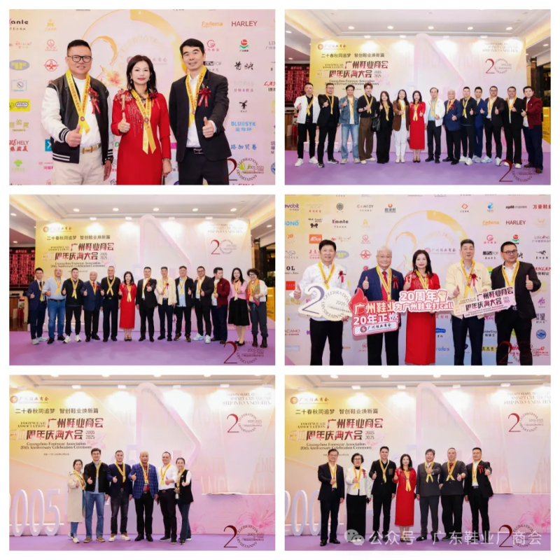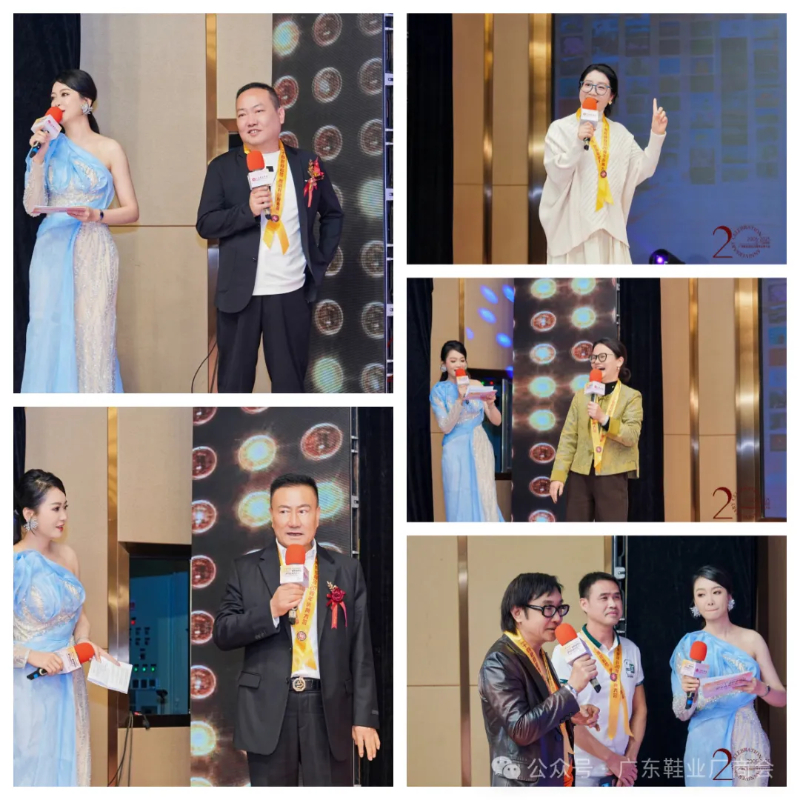 刘主席在致辞中表示,当晚群贤齐聚共庆,中国皮革协会、广东鞋业厂商会等单位代表到场致以祝贺与敬意,肯定其二十载发展成果;广州鞋业历经多年发展,已形成从研发设计到销售服务的完整产业链,在全球市场占据重要地位,更在国家 “一带一路” 倡议下成为全球鞋业贸易关键枢纽;回望商会二十年征程,其始终与会员同心应对市场风云、行业波动及疫情等挑战,以坚韧担当筑牢产业根基;站在新起点,面对数字经济与消费升级机遇,各方坚信在政府支持与商会引领下,全体同仁秉持创新、深耕品质、聚力智创,必将推动广州鞋业续写高质量发展新篇章。