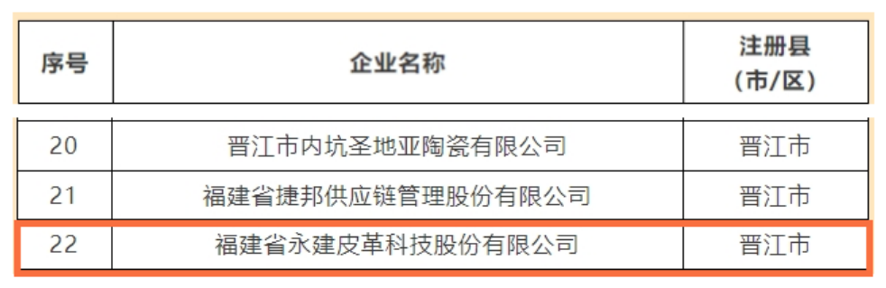 记者从名单获悉,峰安皮业股份有限公司、晋江源泰皮革有限公司入选市级上市后备企业名单,福建省永建皮革科技股份有限公司入选市级挂牌后备企业名单。